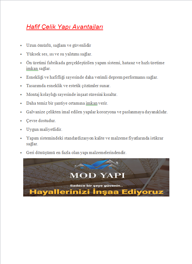 În calitate de oțel Kușadası Aydın İnşaat LIGHT-ROLL, putem produce, asambla și case la cheie în conformitate cu proiectul dorit.